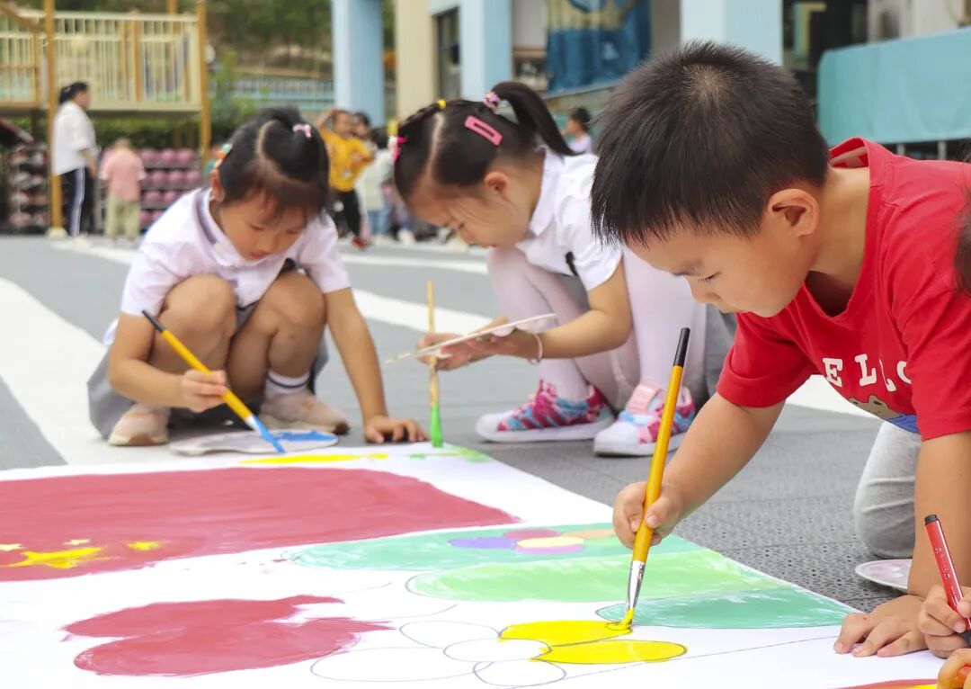 千岛湖南景幼儿园开展绘长卷迎国庆活动,孩子们用手中的画笔绘画鲜红的五星红旗和鲜花等,表达对祖国的热爱和祝福之情,庆祝中华人民共和国成立73周年。