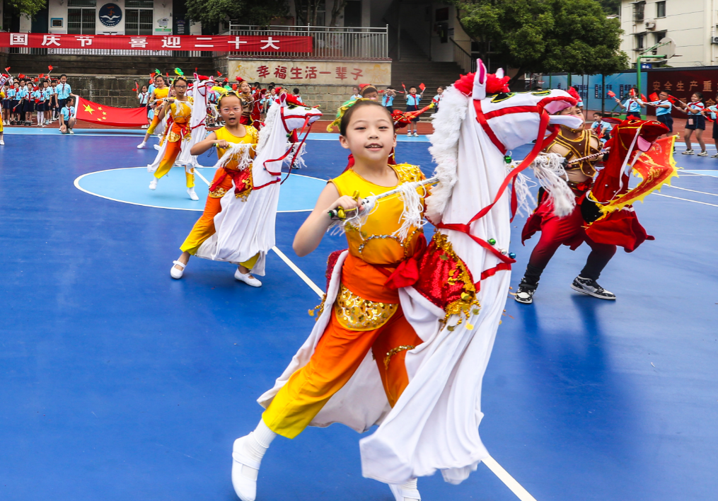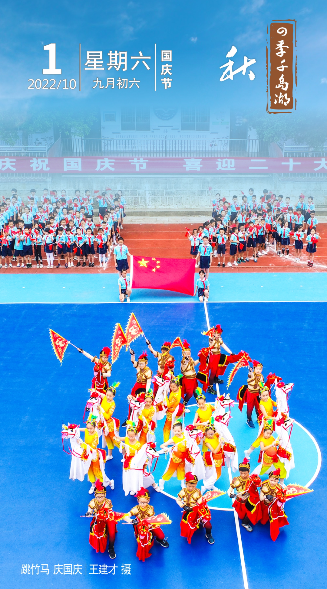 千岛湖镇第一小学开展“跳竹马 迎国庆 ”主题活动,学生们用跳竹马表演方式迎接国庆佳节,祝福祖国的明天经济更繁荣、人民更幸福、国力更强盛。