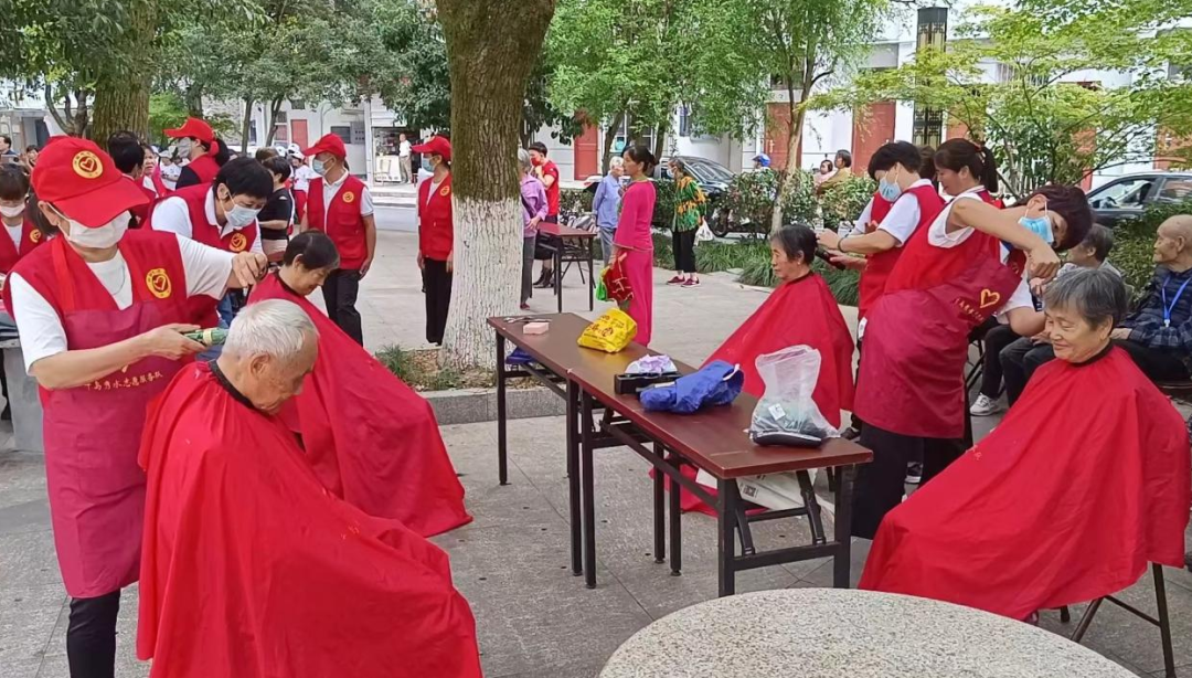 在塘边公园,施家塘社区对接秀水志愿队,联合实验幼儿园、施家塘书画摄影社举办“喜迎党的二十大,欢度国庆敬老情”孝善文化活动。
