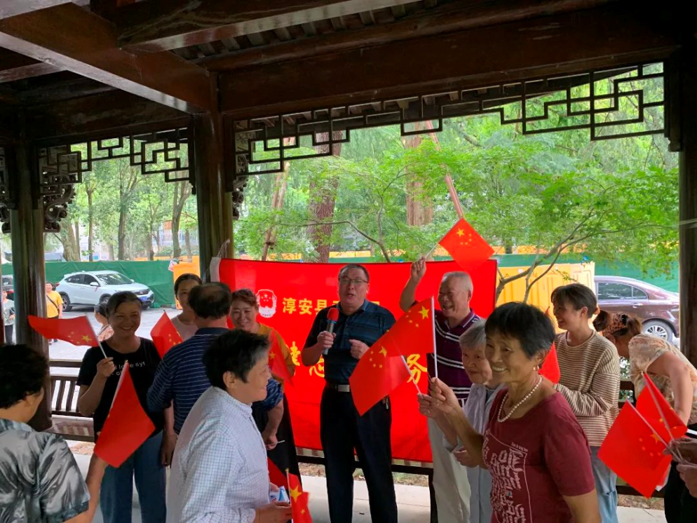 县司法局青溪司法所协同千岛湖镇施家塘社区在塘边公园开展了“庆十一、迎重阳、喜迎党的二十大”活动。老人们在活动现场挥舞着国旗一起高唱国歌,歌颂祖国,以实际行动庆祝国庆节,迎接党的二十大胜利召开。