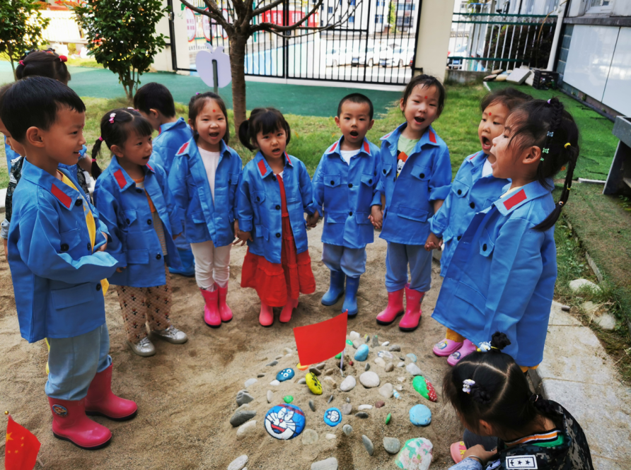 中洲镇中心幼儿园的孩子们用自己充满童心的方式搭建了各种各样的中国桥和生日蛋糕,来表达对祖国母亲的祝福。