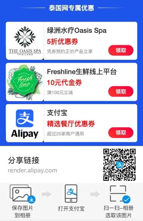 领取支付宝、泰国网为同胞们准备好的优惠大礼,好好地畅游一番吧!