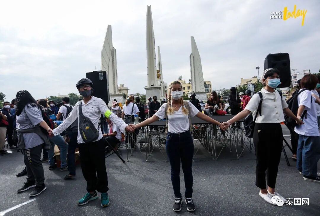 此外,他们还举着希望大家支持泰国人呼吁民主和变革的牌子。此次集会是和平集会,集会者还佩戴口罩防止感染新冠病毒。