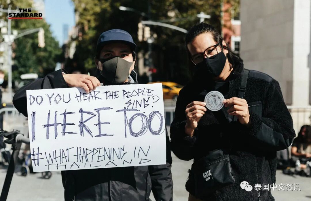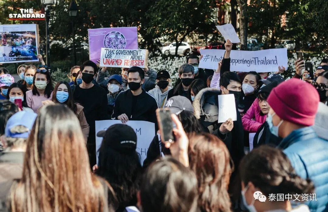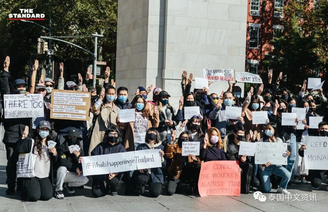 当地时间10月17日中午12:20左右,部分在美国纽约的泰国人在纽约华盛顿广场公园举行“纽约不要独裁”集会,以表示他们反对16日晚上泰国警方用水炮车驱散抗议群众。