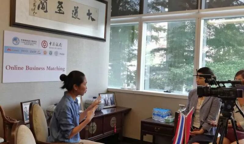 通过视频对接,来自泰国的展商与中国企业开展视频对接,中国银行工作人员作为洽谈助理协助提供翻译交流。展商足不出户,便可跨越千里,与中国各地的企业进行实时对接洽谈。