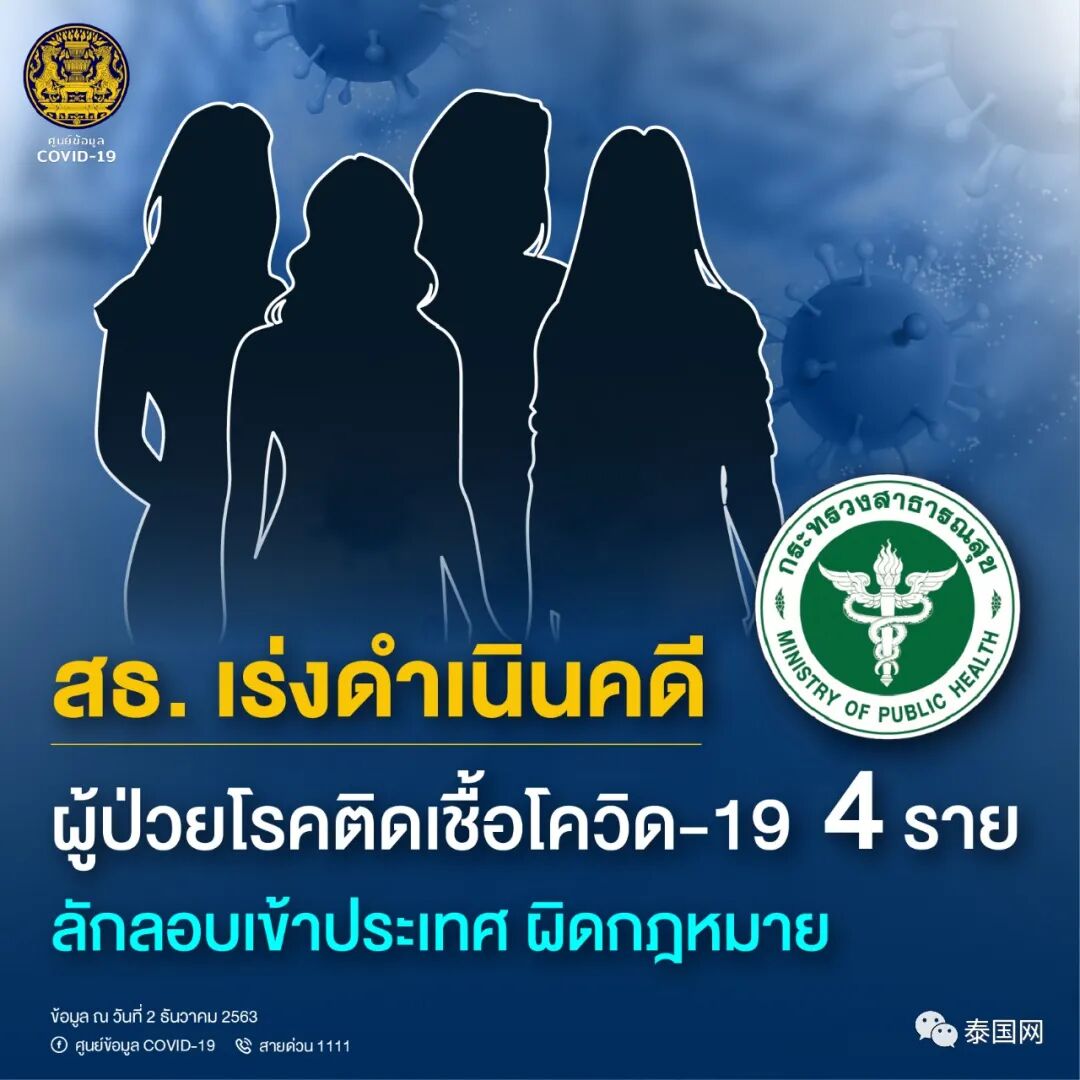 12月2日,泰国卫生部在当日疫情发布会透露了泰国最新疫情进展,泰国今日新增2例偷渡入泰后确诊的患者。