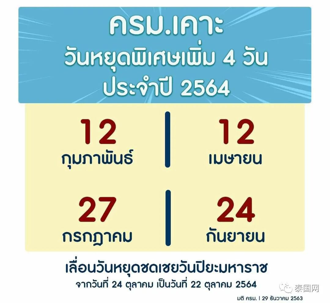 早在12月中,泰国政府便放出风声,要在2021年“多搞几个假期”。
