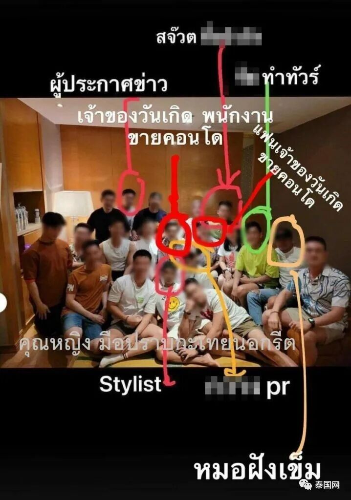 据泰媒消息,28日,泰国某网友通过脸书账号上传了一张20余人参加派对合影的照片,照片上注明了部分人员对应的身份,其中包括新闻播音员、空乘、公寓销售人员、旅游业者、造型师、公关和针灸医生。
