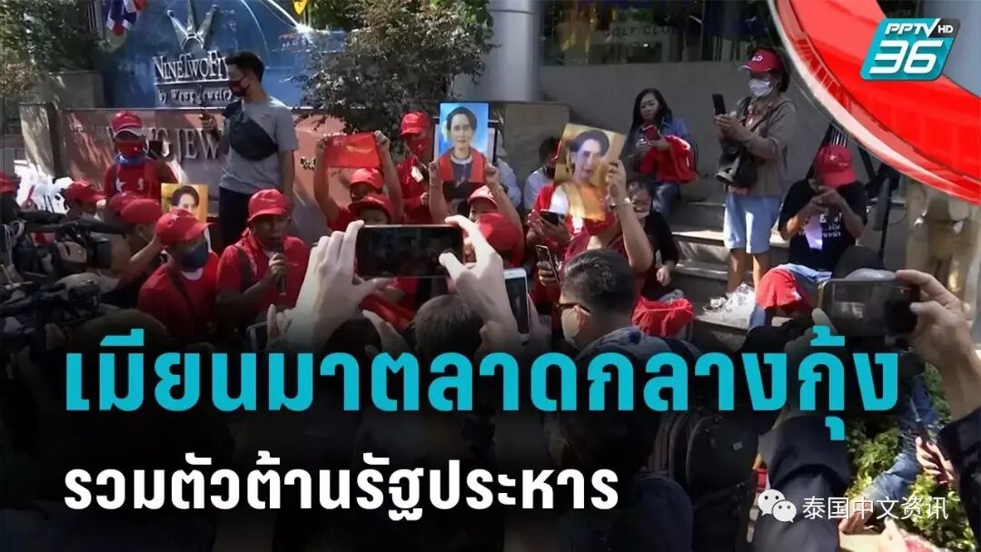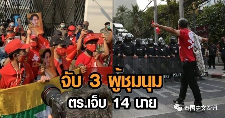 2月1日上午,泰国民主组织We Volunteer发文表示要前往缅甸驻泰大使为缅甸民主声援,当天下午不少人集中在缅甸大使馆前抗议,期间还与警方发生了冲突,导致现场2名警察伤重,12名警察轻伤。