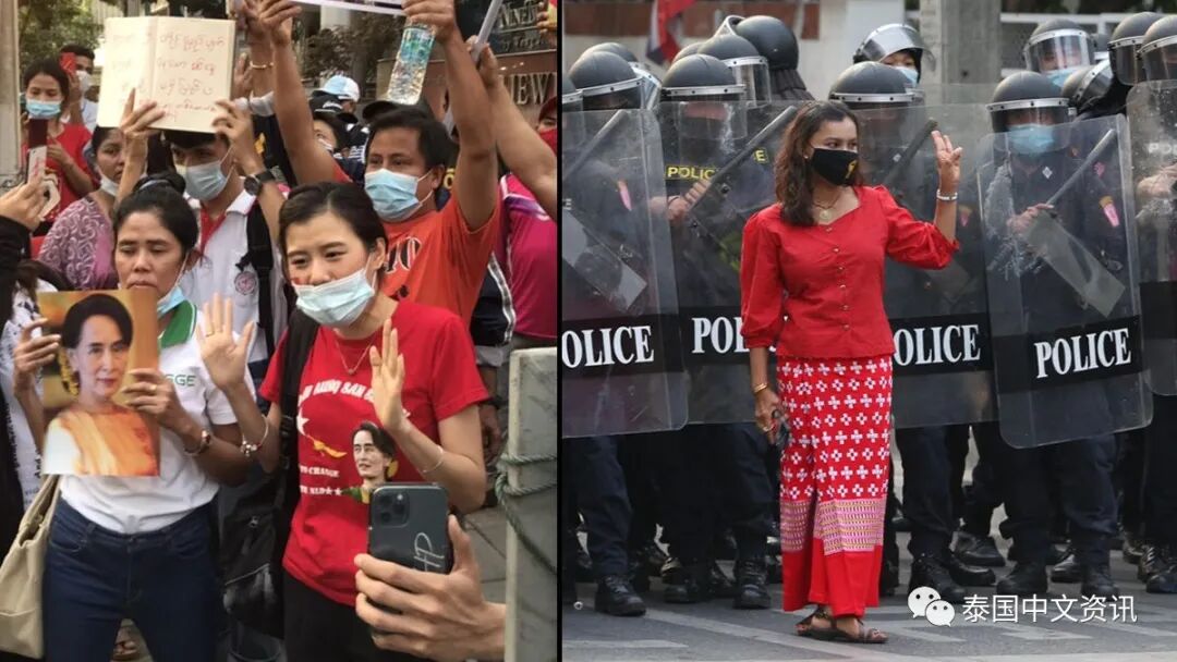 一边是“不干涉邻国内政”的泰国政府,另一边是为缅甸仗义执言的泰国示威者,以及在泰国境内为祖国的变故而走上泰国街头的缅甸民工。