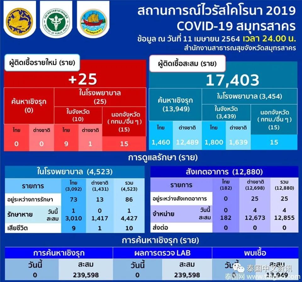 据泰国龙仔厝府卫生办4月12日最新消息,龙仔厝府新增25例确诊病例。
