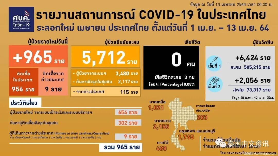 4月13日,泰国疫管中心公布了4月份13天以来的新增统计数据。