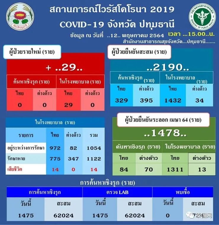 此外,巴吞他尼卫生办也公布了该府12日疫情情况,新增29例确诊病例,新一轮疫情暴发至今该府累计确诊2190例。