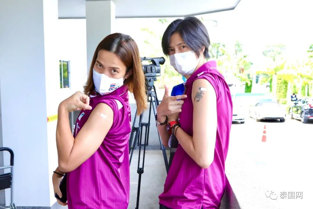 5月17日,泰国女排国家队队员及随队教练、工作人员等一行17人前往Srithanya医院接种新冠疫苗,因泰国女排将于数日后赴意大利里米尼参加2021年世界女排联赛。