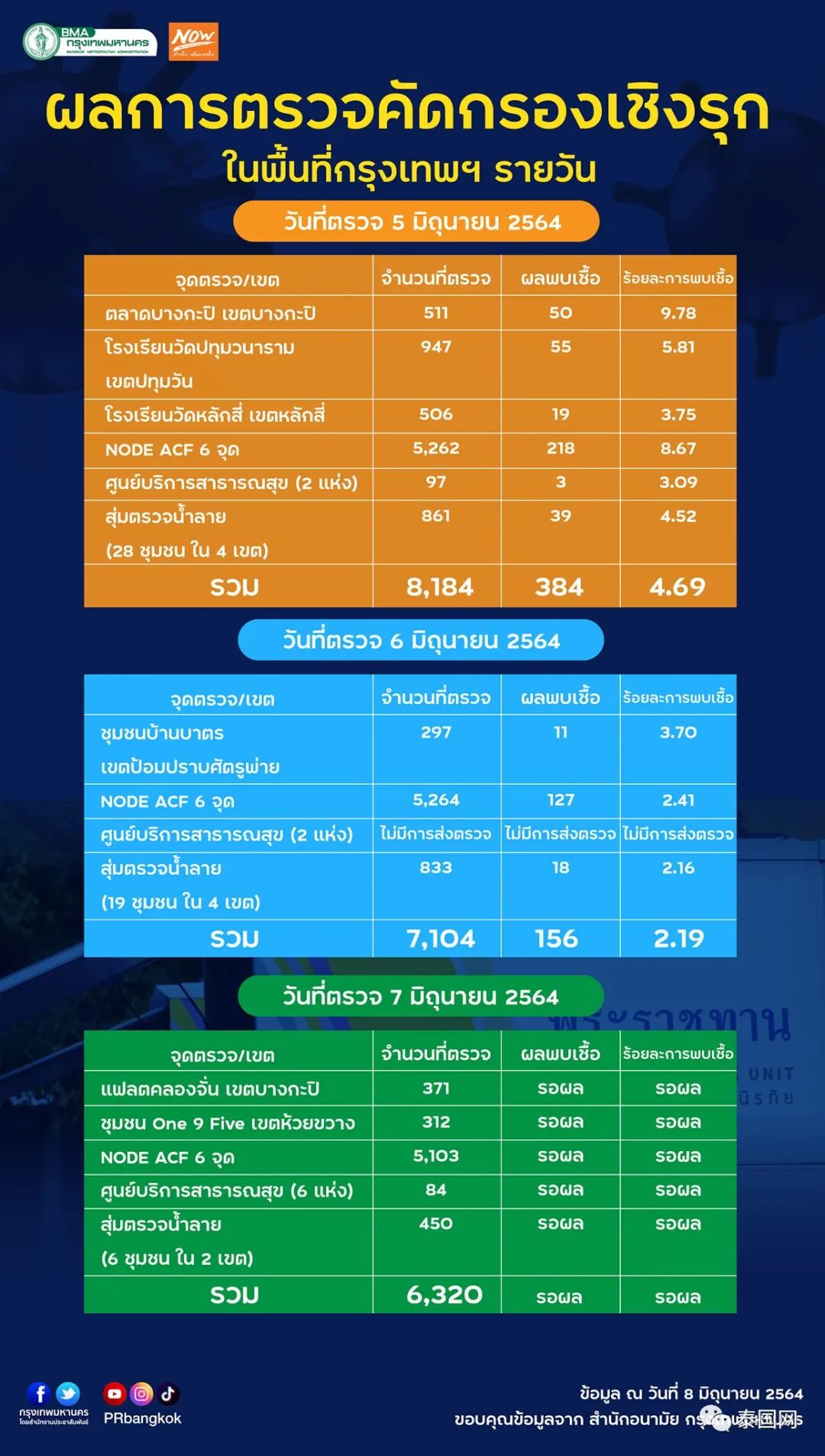 6月8日,曼谷公共关系办公室对外公布了6月5-7日曼谷新冠疫情防疫中筛检工作的统计情况。