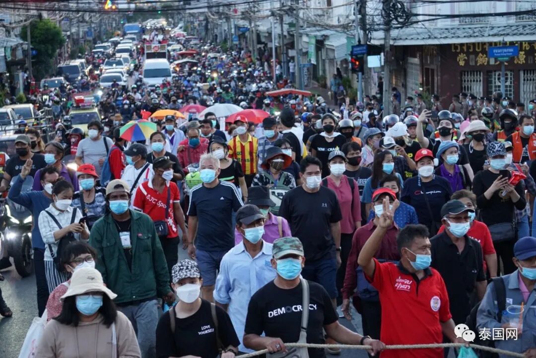 据悉,“泰人团结”团体于今日从Phanitchayakan路(Chamai Maru-chet桥)游行至政府大楼,向泰国总理兼国防部长巴育施压,要求巴育辞职。