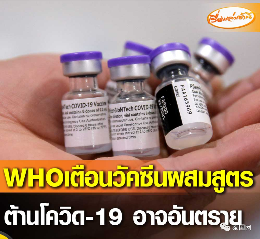泰国网报道,据多家泰媒7月13日消息,世界卫生组织(WHO)首席科学家苏米亚·斯瓦米内森(Soumya Swaminathan)对混打新冠疫苗相关事宜作出回应,称在不确定安全性和有效性的情况下,建议目前避免混打不同厂家生产的新冠疫苗。