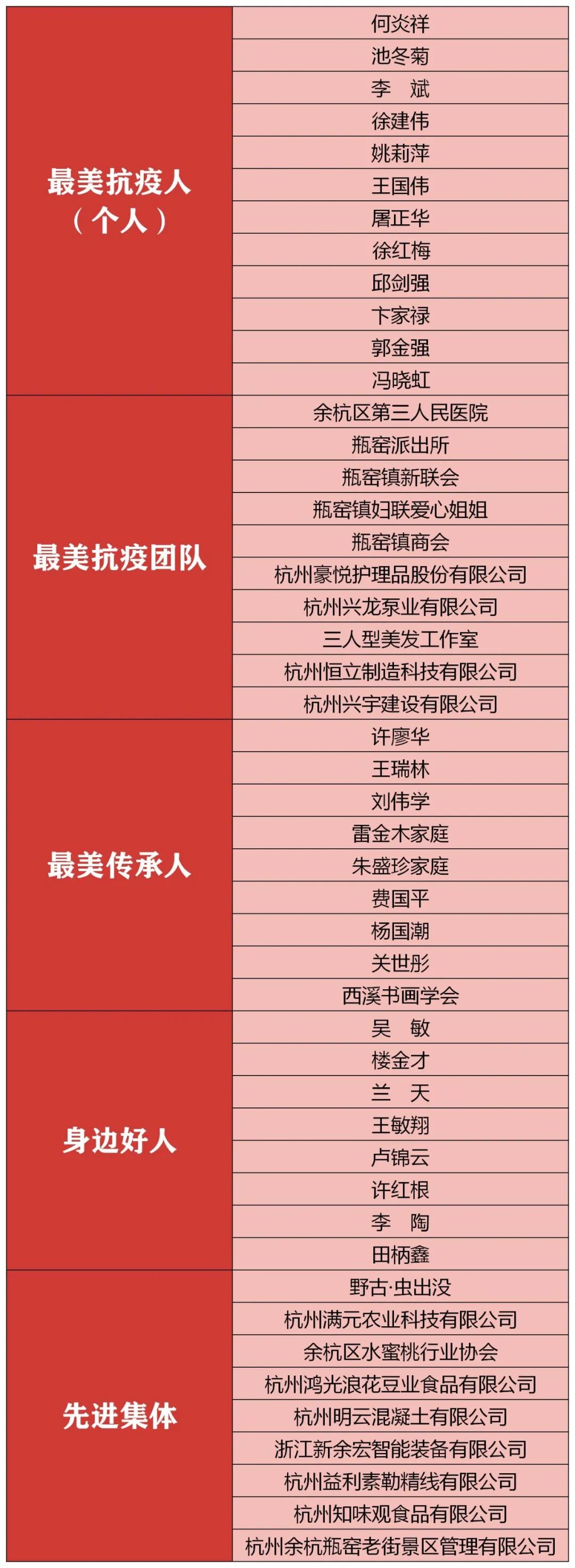 余杭区第三人民医院的四位援鄂医护人员、将七百余件古陶瓷悉数免费捐献出来的收藏达人许廖华、有效推动瓶窑文旅发展的杭州余杭瓶窑老街景区管理有限公司……活动现场,数十位“瓶窑榜样”齐聚一堂,他们来自各行业,但都为瓶窑社会经济的稳定与发展贡献了自己的一份力量,为弘扬文明新风做出了榜样。