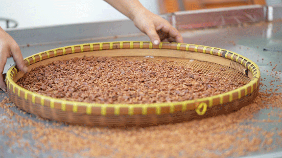 之后便是脱蒲、筛选、晾晒、人工水选、蒸煮……等18道工序,