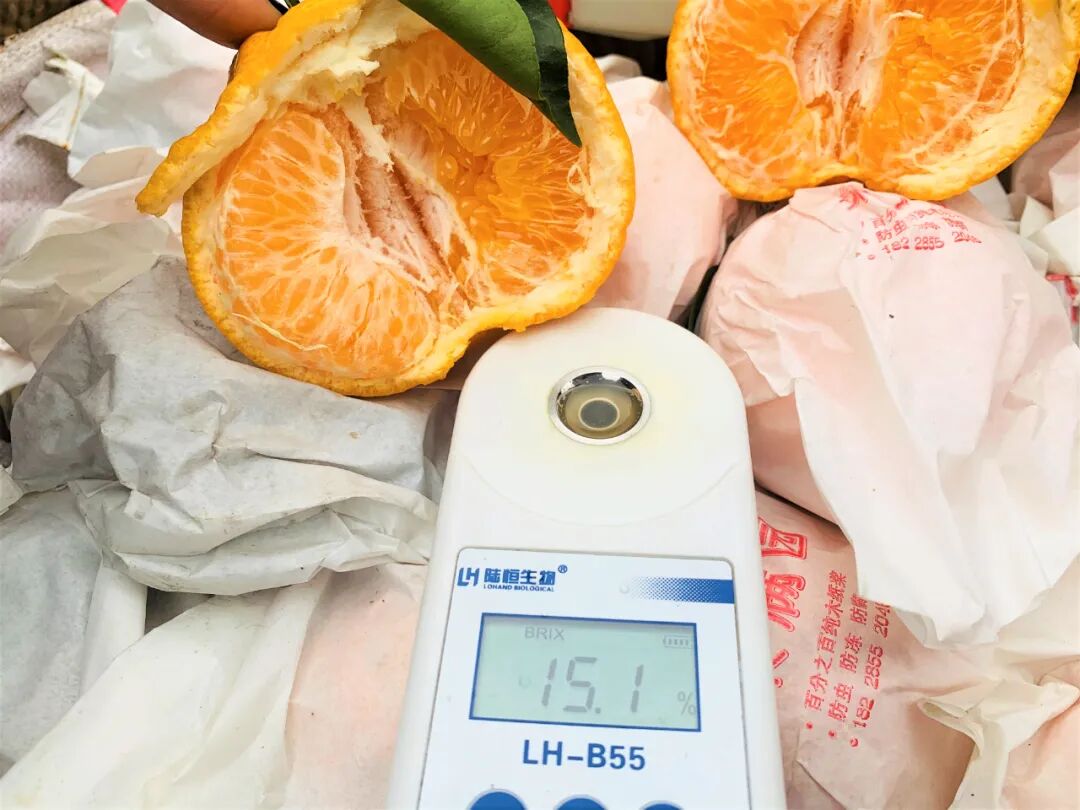 耐心等待果子在树上长熟。进入采摘期后,果农们还会随机检测果园各个角落的甜度,达到标准才会进行采摘。