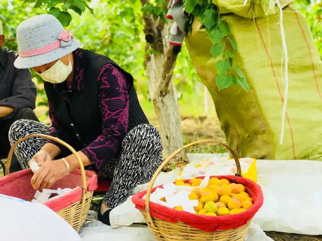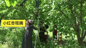 太过娇嫩,所以并不能用机器采摘。成熟的小红杏要果农们爬上树一颗颗采摘。