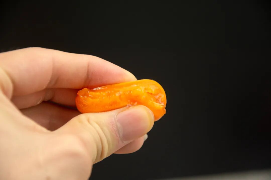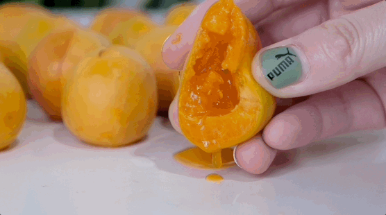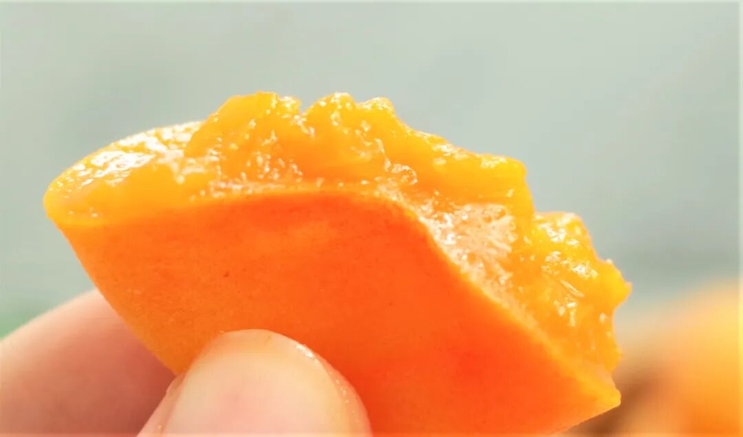 3.完全成熟的小红杏会出现糖融现象(果子呈琥珀透明水晶状),这是糖分累积,此类果皮没有破损,口感和风味更佳