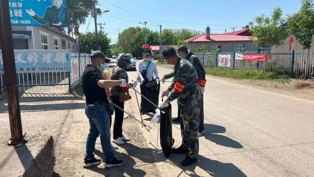 爱辉区幸福乡职工清理环境卫生