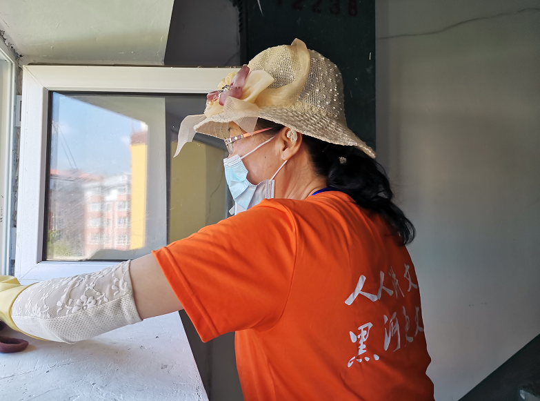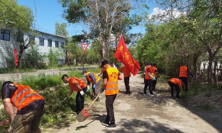 黑河日报社干部职工清理小区垃圾