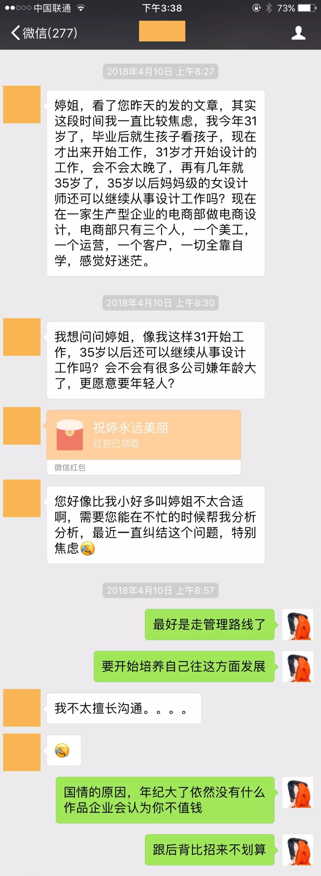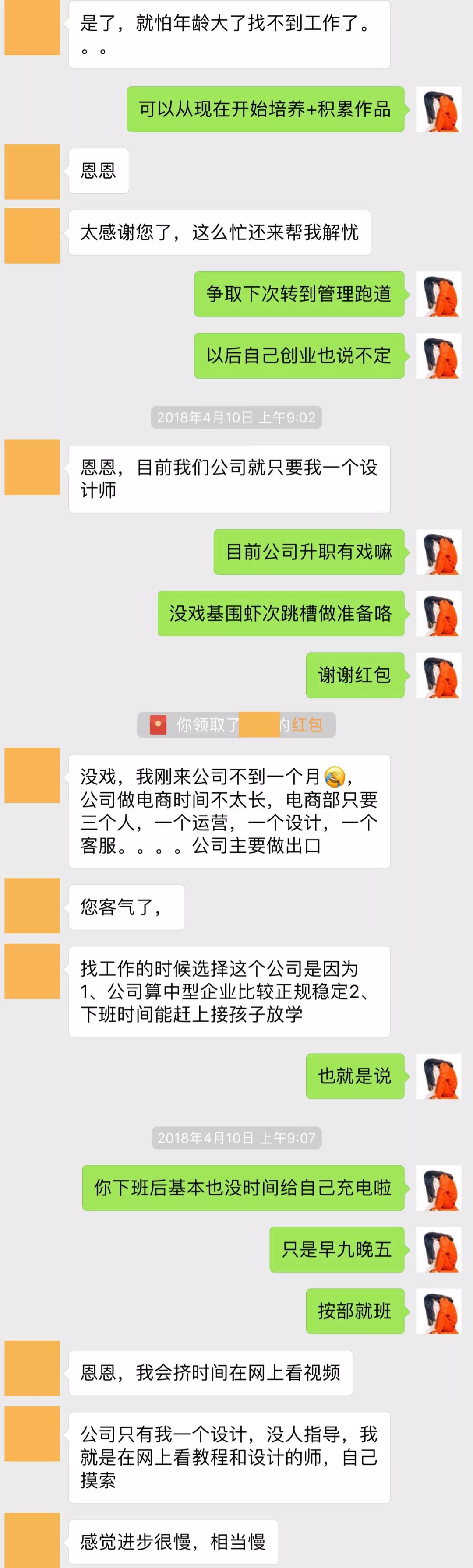 并且我最近也收到了很多妈妈级别的设计师发过来的反馈,真的情况不容乐观,我们先看下这位已婚未育女设计师的情况吧: