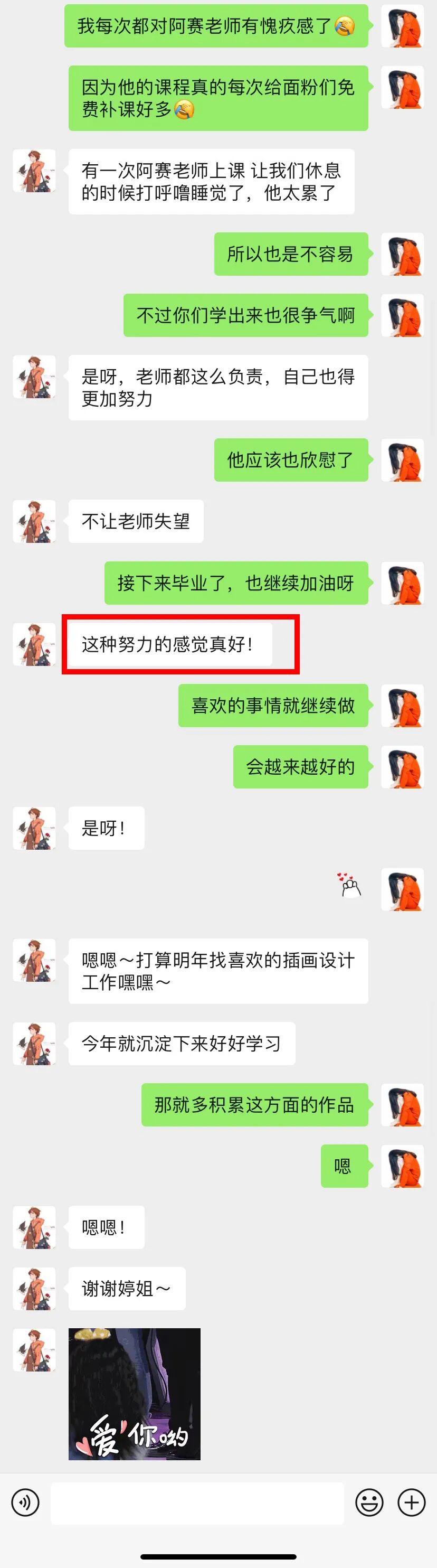 在这篇文章的结尾,我特别想顺带着再跟大家分享一位面粉的励志故事,虽然她不是报课程的学员,但她跟我前面提到的很多人一样,都是关于“坚持+学习”改变命运的一个典型,只是她的自学能力要强一些,我们不妨来看看。