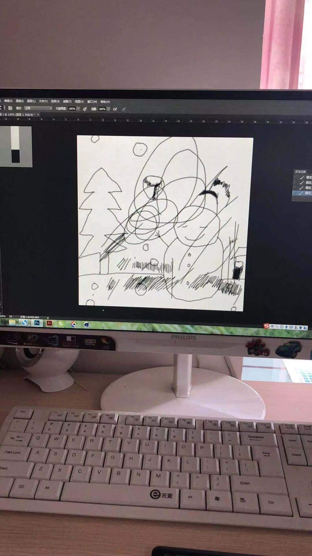 因为她第一次上课画的东西长这样: