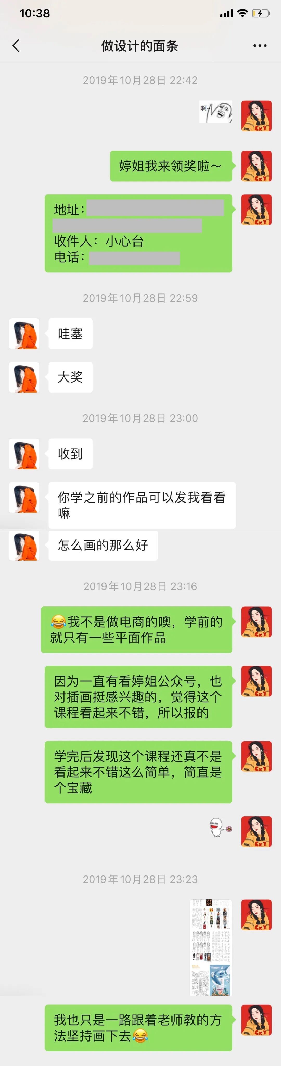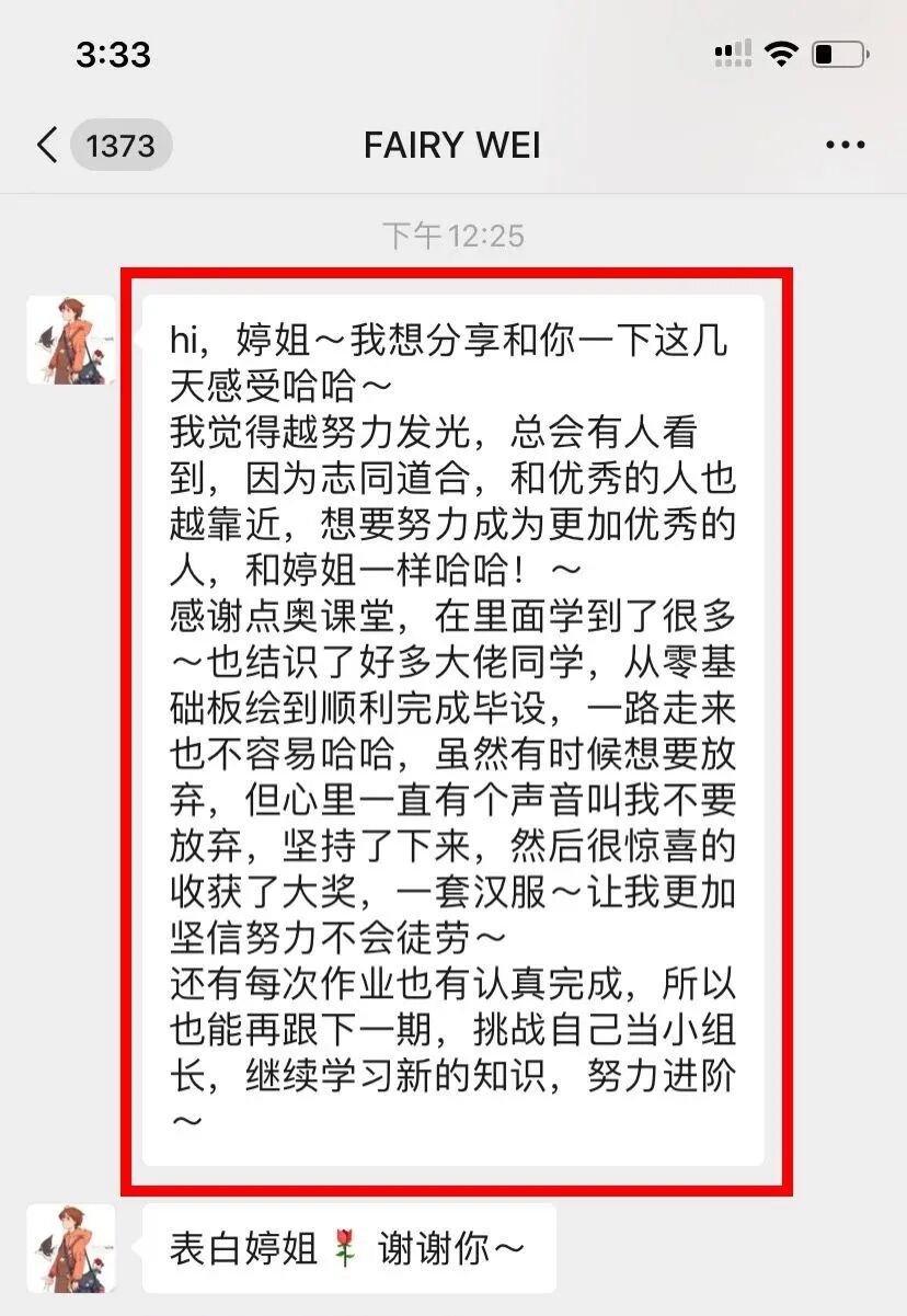 而且毕业后这位小艺同学也因为顺利找到了满意的工作和薪资待遇来找我报喜了,最后又获得了我赠送的进步奖——一块价值2千多元的手绘板 ,可谓是双喜临门了,非常替她开心啊: