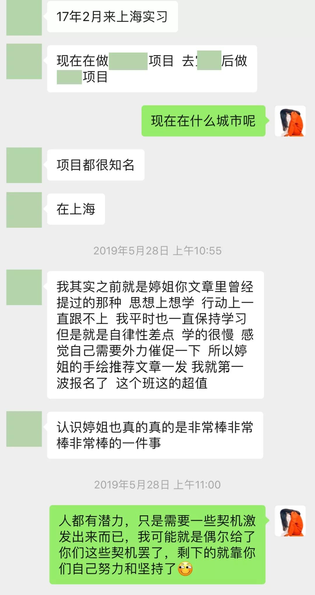 尤其是13期的一位五年没有上过班的全职宝妈前段时间发给我的感想反馈,也让我很是触动: