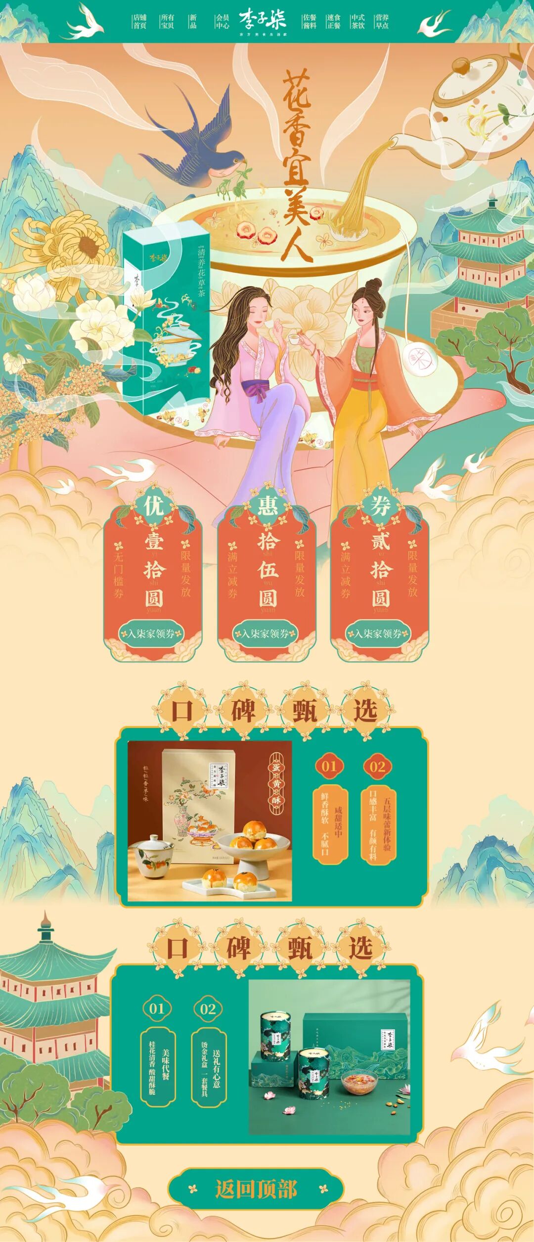 一张手绘页面体现的是设计师的文化储备+想象力+手绘执行力+色彩构成+平面构成+营销定位等等各种知识把握能力的综合体现,还蛮考究功力的,所以我一直都觉得手绘方向的电商设计师是真的很厉害。