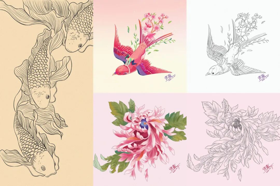 因为篇幅有限,我就在往期的每一届面粉学员作品里挑选1-2个做展示好了,这样大家也可以看到这几年来我们的0基础手绘课程的成长过程和学员作品的风格多样性。
