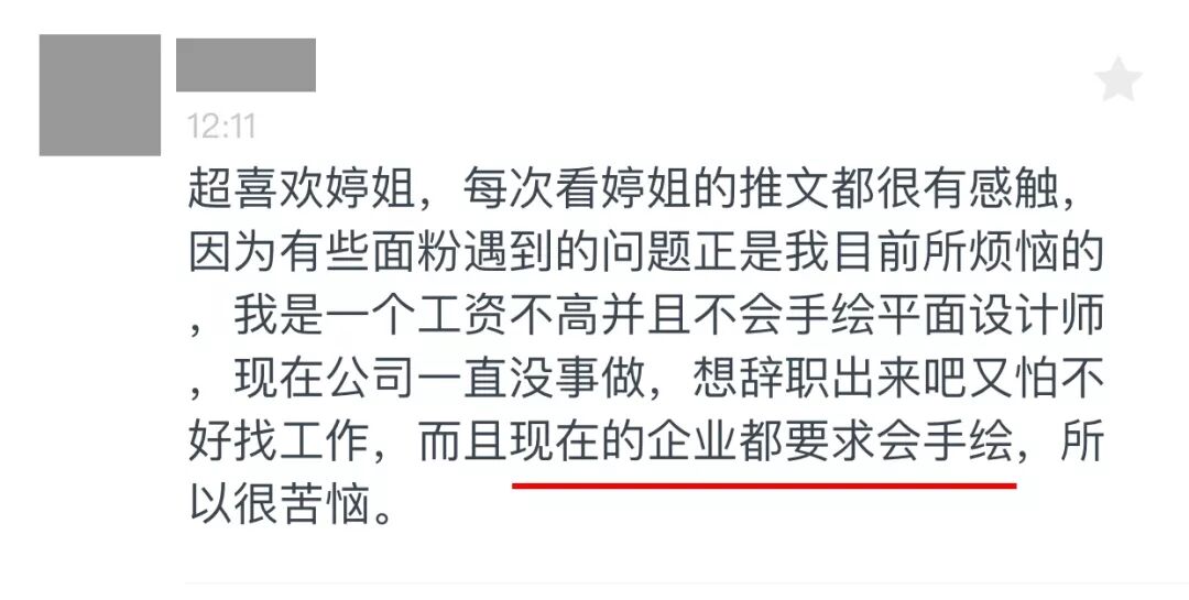 比如,我经常会在后台收到这种反馈,因为不会手绘,找工作屡屡碰壁: