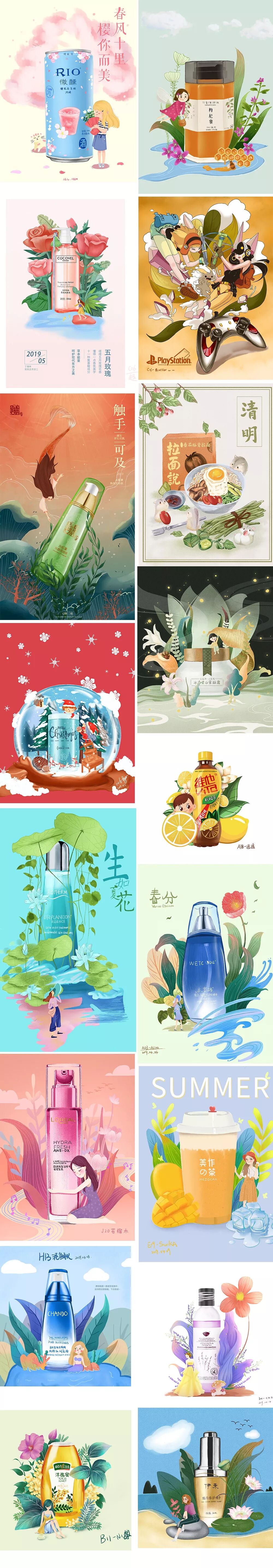 不过我这里指的手绘可并不是指那种只会描照片的转手绘而已,而是能够依据不同的设计需要去创造形象/搭建场景的手绘,因为无论你要做的是何种风格和形式的手绘设计,你的手绘都是需要结合设计目的和需求方向的,这样做出来的设计才是有灵魂的,才是能打动人从而获得商业价值的,要不然只是一具空壳而已。