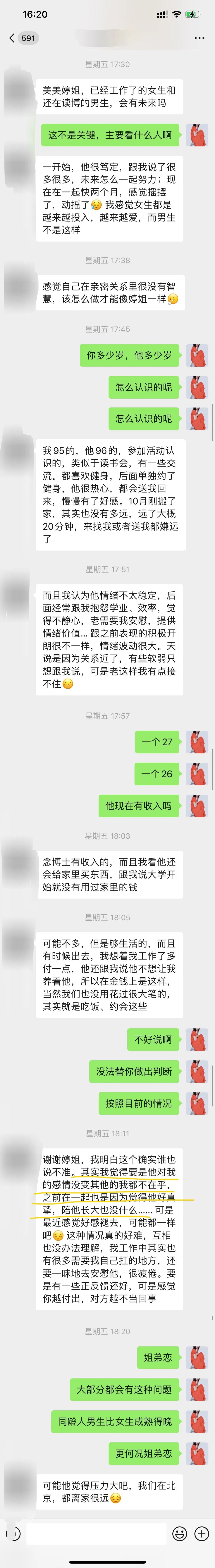 姐弟恋能不能走到最后,已经工作的女生和读博的男生能不能走到最后,这事情我是没法判断的,所以不好妄下定论。