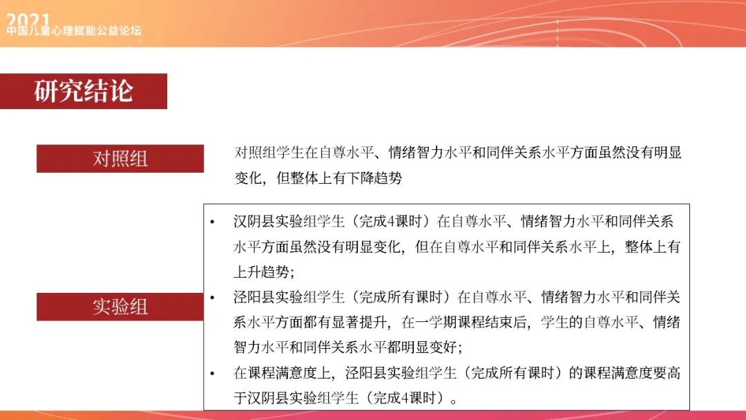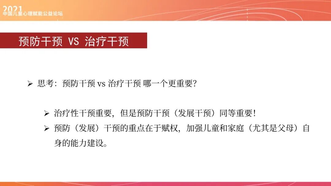 所以我觉得预防干预或预防性的心理发展项目,重点在于赋权,促进儿童有自我的能力的提升和家长能力的提升。