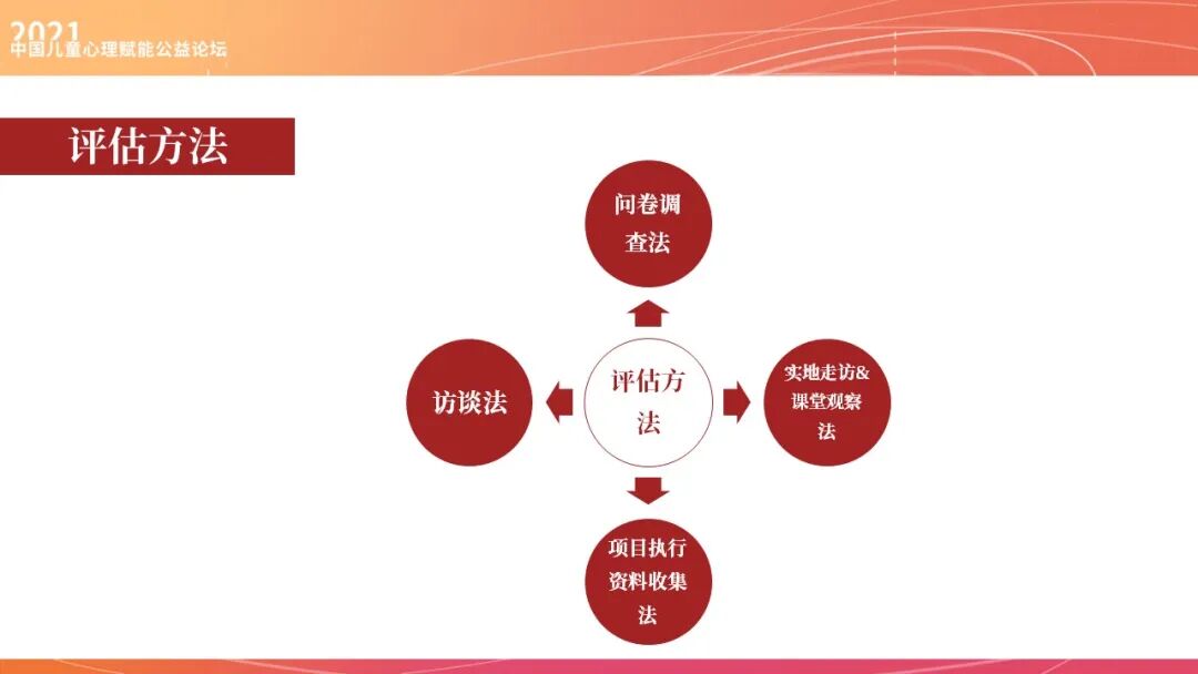 日慈的评估方法是混合研究方法,既用到了质性的研究,比如说访谈,实地走访、课堂观察,资料收集,对资料进行分析,也用到了量化的问卷调查方法。