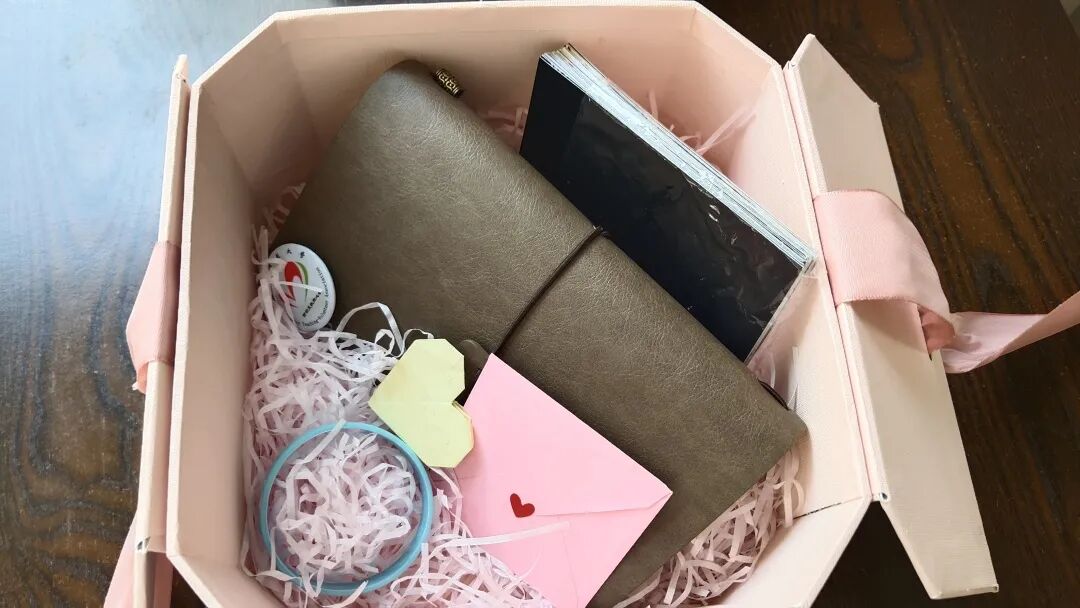 后来打开看到笔记本上写的话这时候才恍然大悟。和给我们队寄礼物的彭萌瑾队长联系后才知道,原来是日慈精心准备的惊喜。她还跟我说,快递到了我没第一时间去拿弄得他们很着急,还想要不要打电话扮成快递员来催我去拿一下😂 😂 。