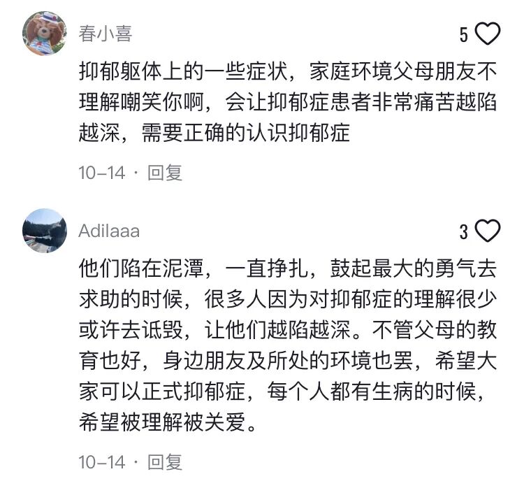 有网友在纪录片下留言,指出小城市缺乏心理咨询师,孩子抑郁确诊后巨大的隐形开支,让基层家庭难以承受。
