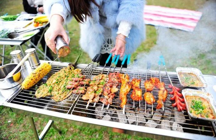喝着茶 听着音乐 吃着烧烤