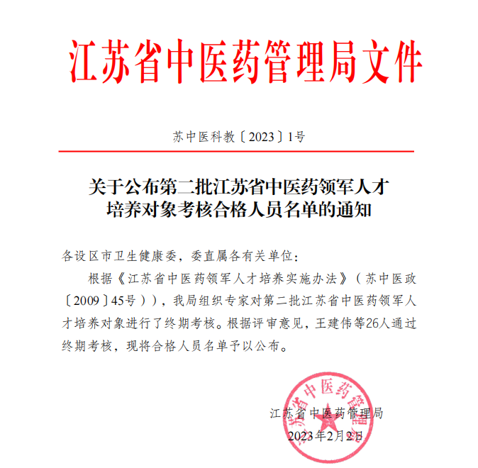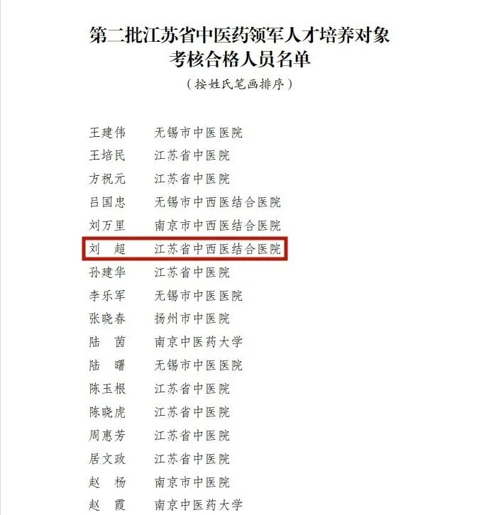 日前,江苏省中医药管理局发布了《关于公布第二批江苏省中医药领军人才培养对象考核合格人员名单的通知》,我院刘超、谢林、霍介格、曹鹏四位中医药领军人才项目获得评审组专家高度认可,圆满完成培训考核任务,获得江苏省中医药领军人才荣誉称号。