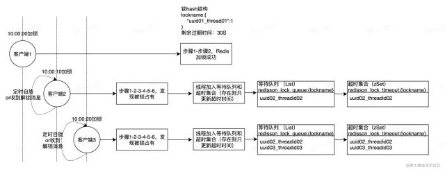 ttl + 2 * currentTime + waitTime是score的默认值计算公式如果模拟以下顺序,就会明了redisson公平锁整个加锁流程