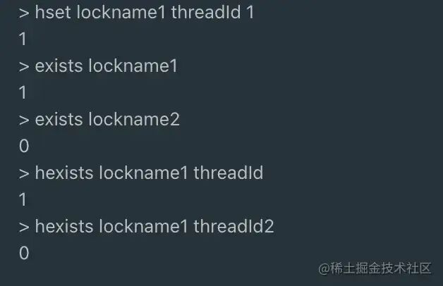 设置一个名字为lockname1的hash结构,该hash结构key为threadId,值value为1