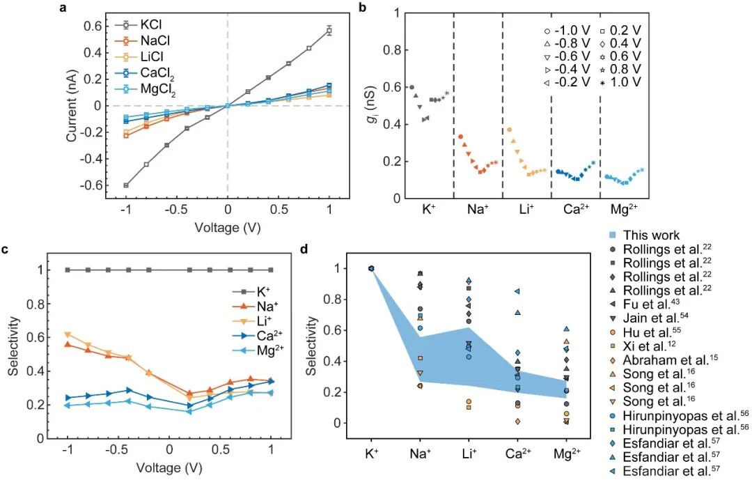 图2 石墨烯异质纳米通道具有的电压可调离子选择性