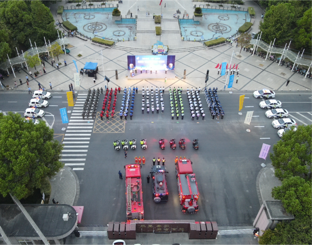 2022年8月25日晚,“除险保安 ‘河’你同行”河庄街道“除险保安百日行动”攻坚仪式拉开帷幕。来自街道机关、派出所、综管大队、平安志愿者、村社干部等7个方队代表参加。