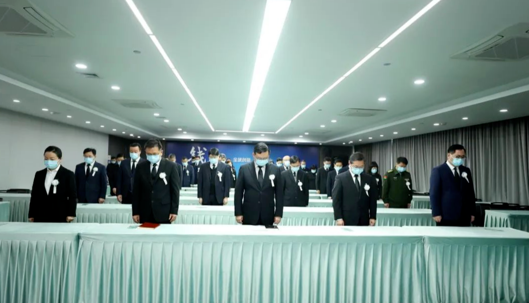 山河同悲,举国哀悼。上午10时,江泽民同志追悼大会开始。与会区领导佩戴白花全体肃立,在悲壮的哀乐声中,满怀敬意和深情默哀3分钟,向敬爱的江泽民同志表达深深的哀思和追念。追悼大会结束时,大家悲痛肃立,向江泽民同志遗像深深三鞠躬。