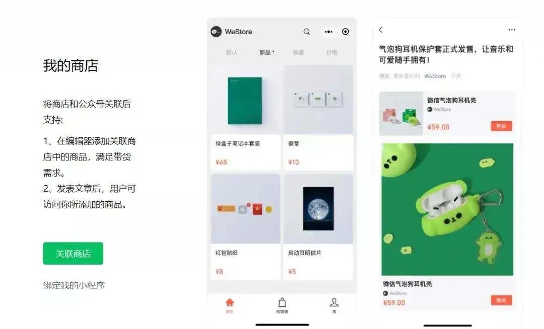据熊猫人运营社 8月25日下午,微信公众号推出新功能“我的商店”,添加该功能后,支持在文章中插入商品卡片,没有开通商店的话可免费开店。(1)在编辑器添加关联商店中的商品,满足带货需求。另外,还可以绑定小程序接入公众号进行卖货。据悉,为了帮助微信生态内的运营者通过直播/文章带货变现,微信官方提供了小程序关联视频号/公众号的能力,可以通过接入标准版交易组件或自定义版交易组件的方式接入。7. 抖音内测社交卡片推荐、多人线上聊天、长视频等功能